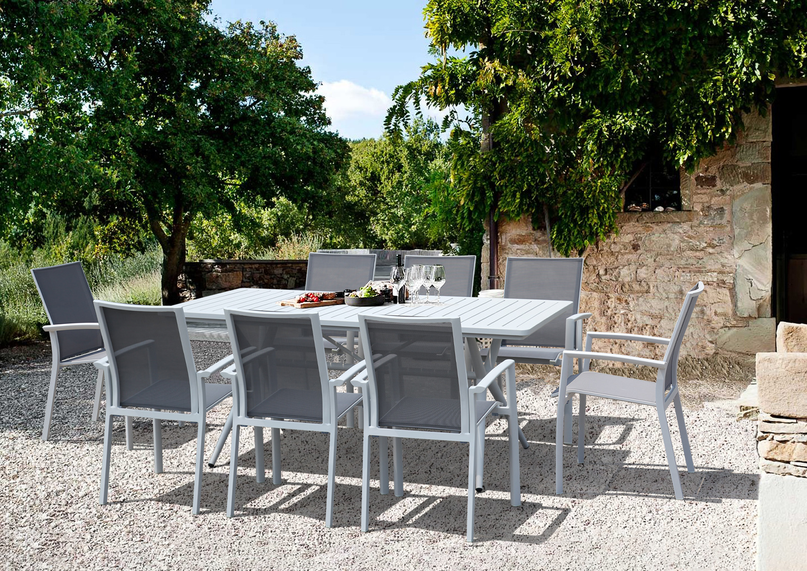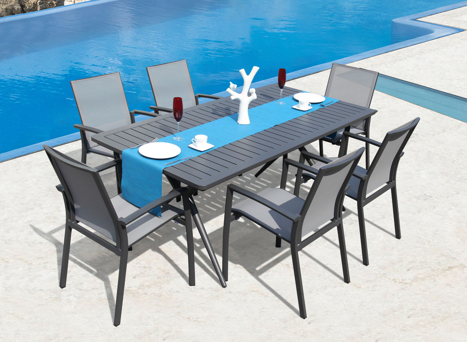 Brunch on the patio or cocktails by the pool—this aluminum outdoor dining set shines in every al fresco moment. With a UV-resistant, rust-proof aluminum frame, it blends sleek modern style with all-weather durability, while comfortable seating invites lingering. Perfect for gardens, resorts, or cafes, it turns outdoor meals into stylish, hassle-free joy.
