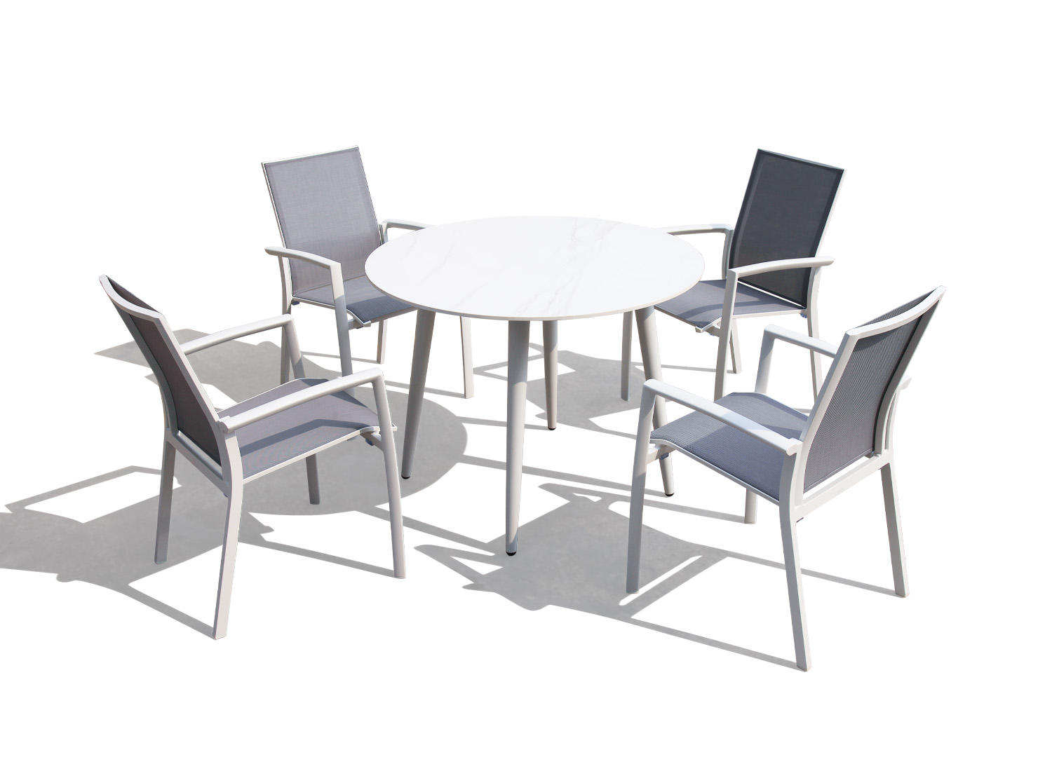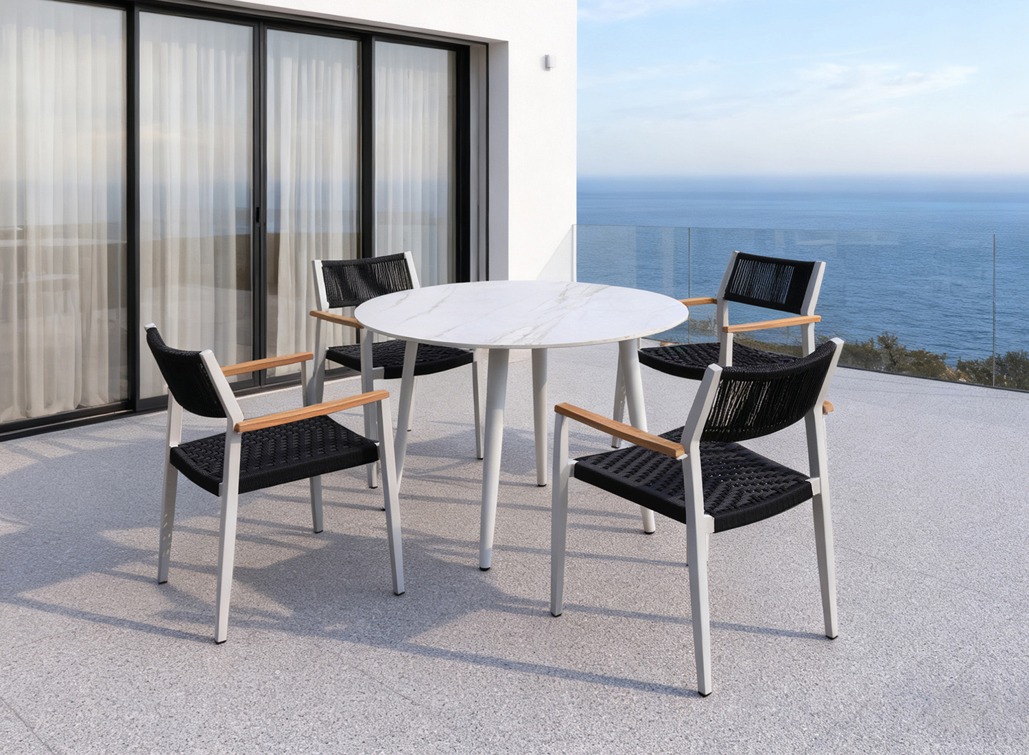 Brunch on the patio or cocktails by the pool—this aluminum outdoor dining set shines in every al fresco moment. With a UV-resistant, rust-proof aluminum frame, it blends sleek modern style with all-weather durability, while comfortable seating invites lingering. Perfect for gardens, resorts, or cafes, it turns outdoor meals into stylish, hassle-free joy.