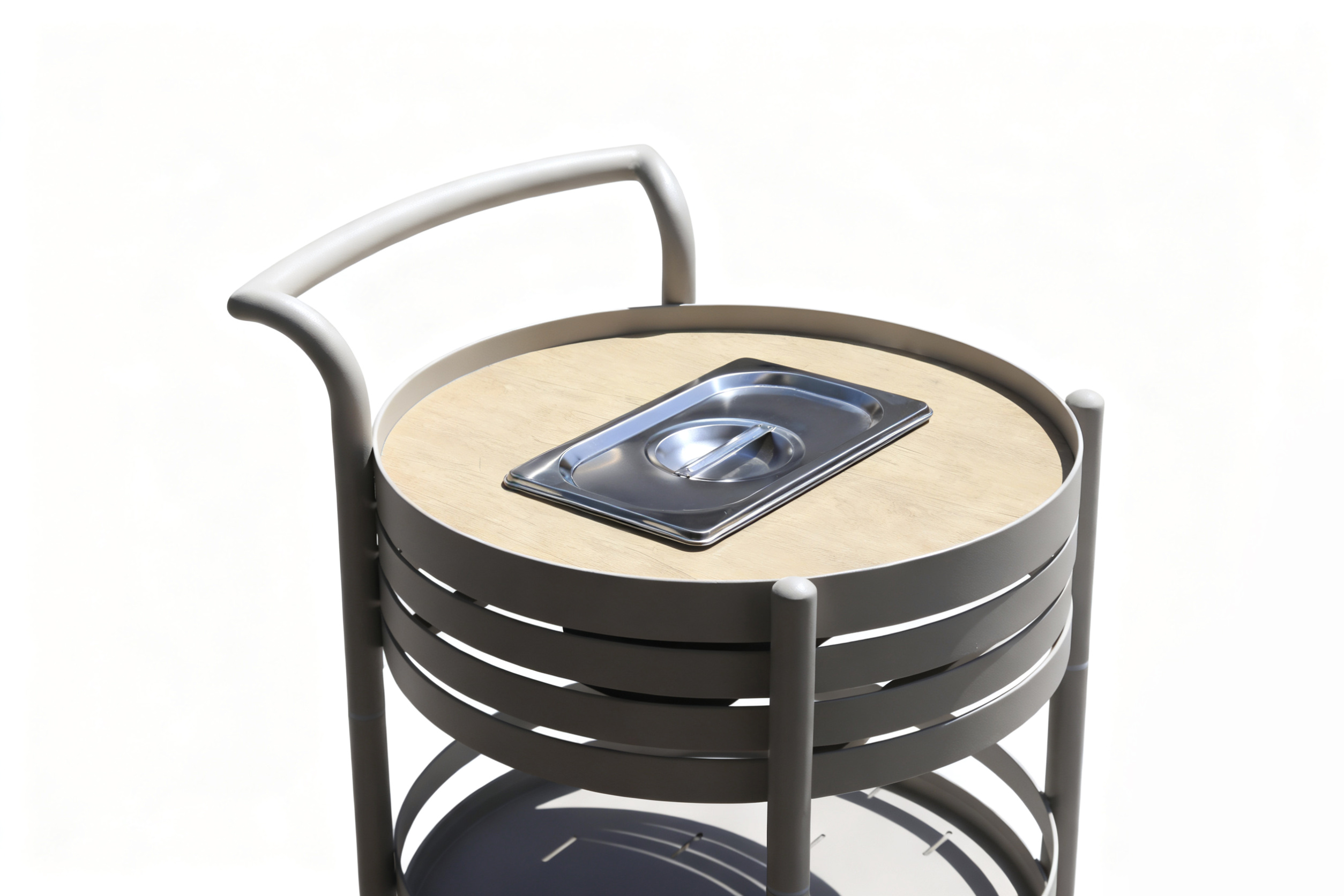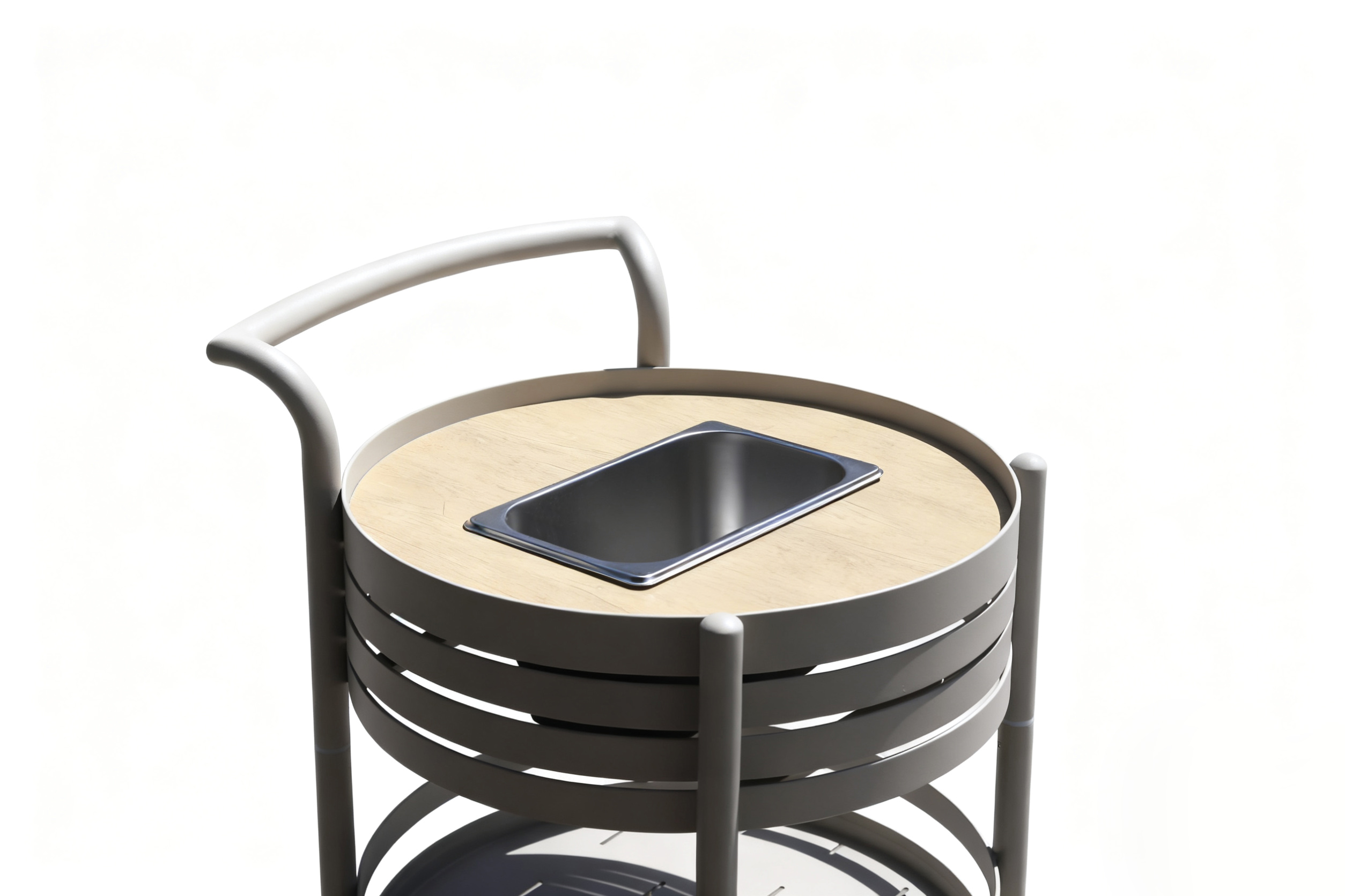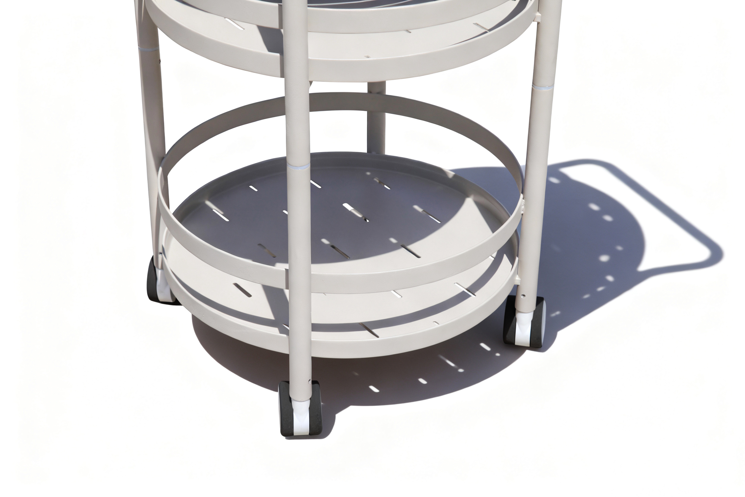 Discover this stylish round aluminium bar cart, where modern aesthetics meet outdoor resilience. Constructed from premium aluminium with an anti-UV powder coating and a grained matte finish, it’s built to endure sun, rain, and humidity without losing its charm—ideal for year-round outdoor use. The three-tier circular design offers generous space for drinks, snacks, or decor, while its sleek silhouette adds a touch of contemporary elegance to any setting. Plus, the waterproof feature ensures it stays pristine even when used near pools or during unexpected drizzles.