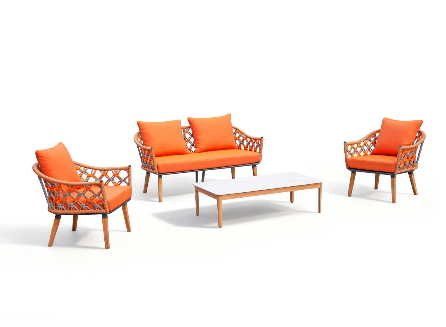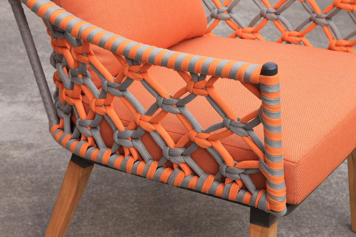 Frame Material: Aluminum frame with powder coating finish, wood color painted ; with cushion seat and back
