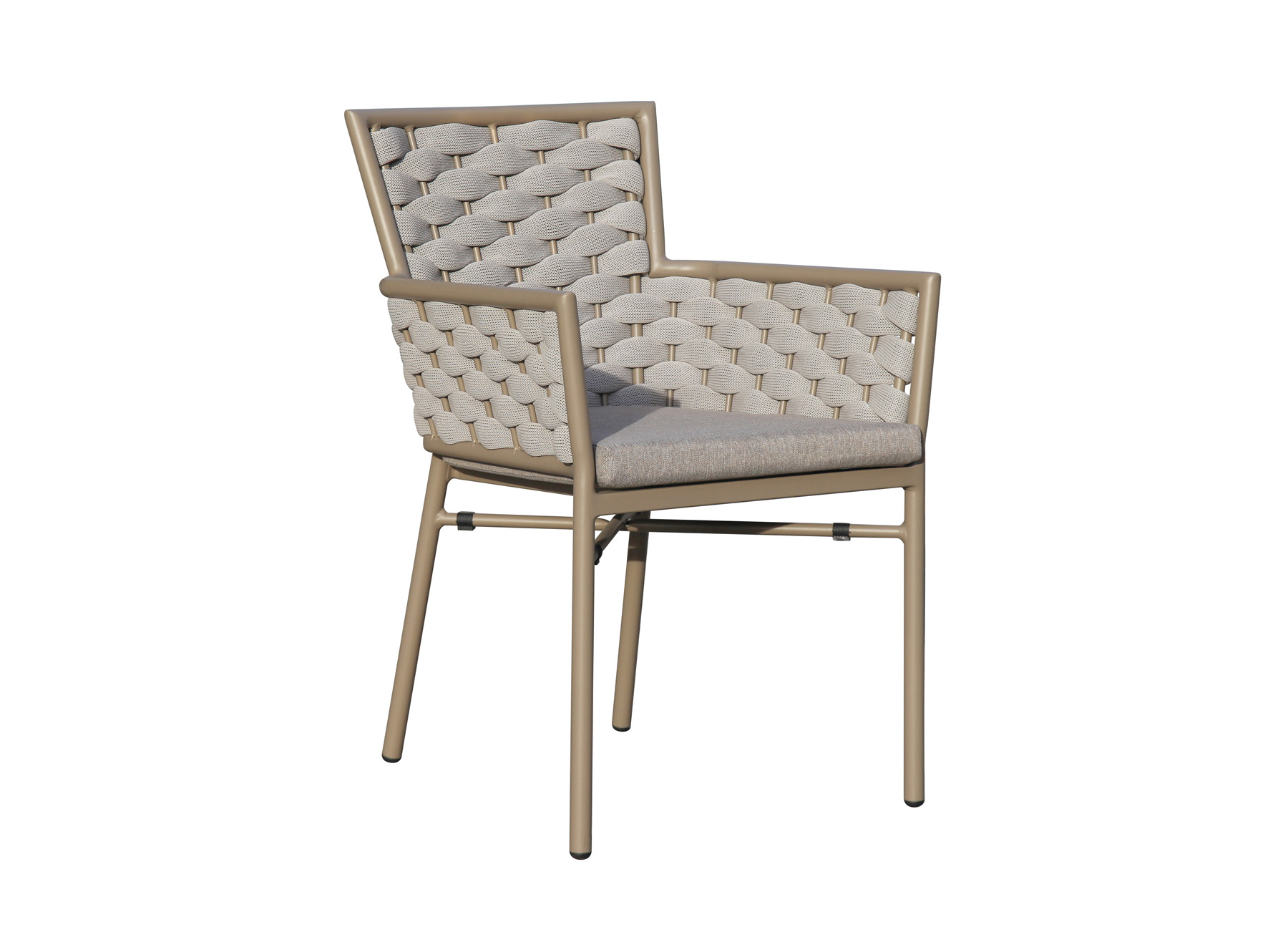 Main Material: Aluminum Frame powder coating, textylene belt weaving, with 5CM thick quick dry foam cushion, stackable